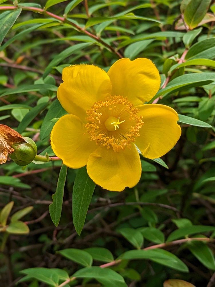 ①ヒベリカム.ヒデコート オトギリソウ科 オトギリソウ属 キンシバイの園芸品種 生涯学習センターの庭で