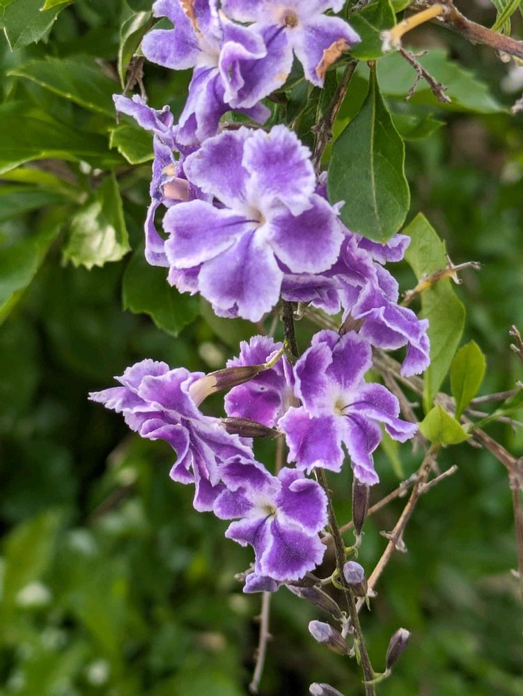 ③デュランタ 別名タイワンレンギョウ、ハリマツリ クマツヅラ科 ハリマツリ属(デュランタ属)熱帯花木