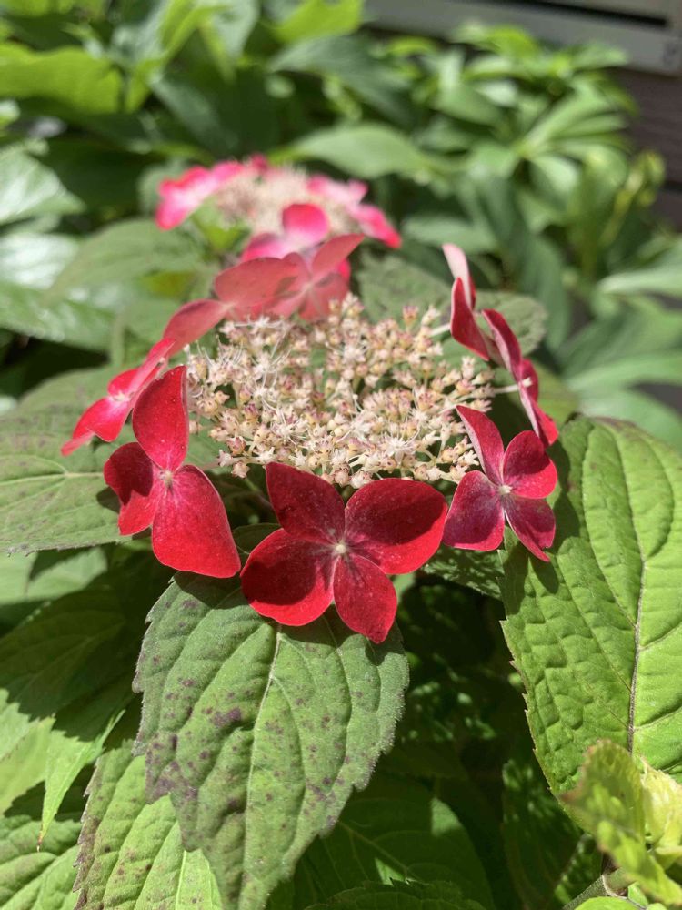 紫陽花 紅 白から赤へ色変なんて不思議だよね🤔パキッとした赤めちゃ新鮮