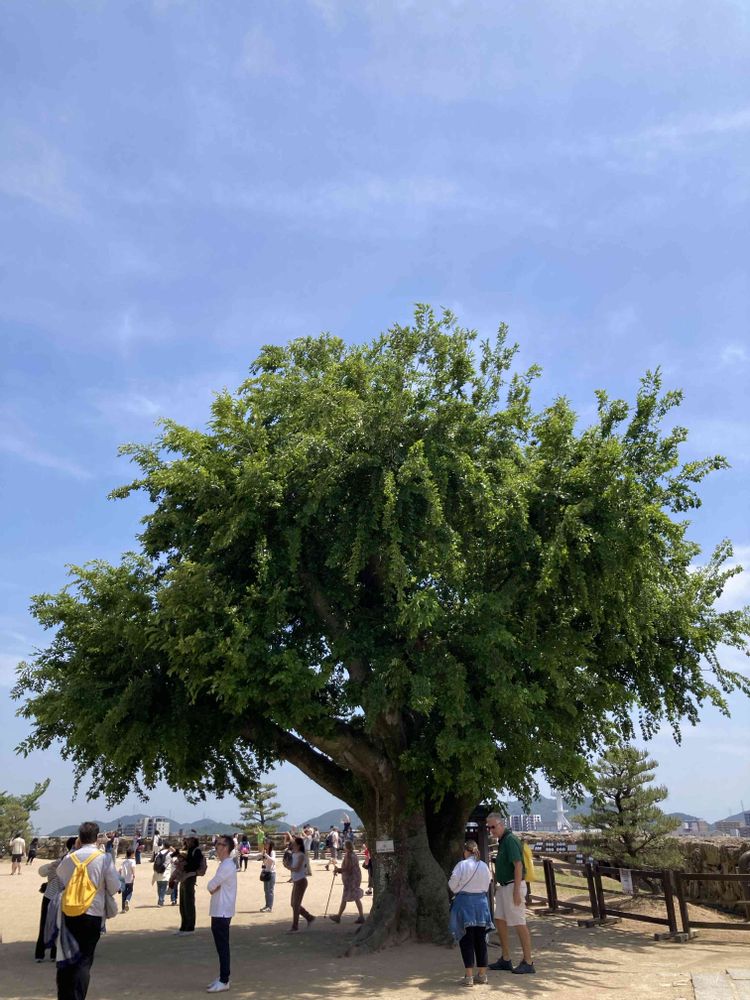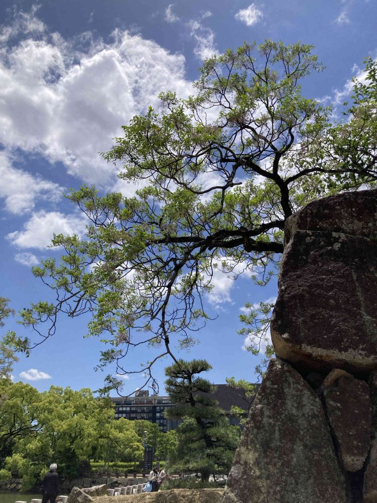 1️⃣石垣から枝垂れるような木の姿がかっこいいです 岡山城にて