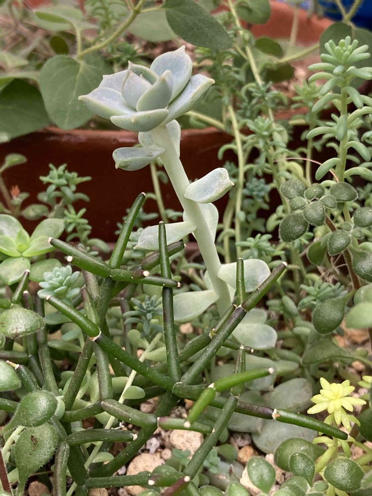 pic4 何でもポイポイ鉢にいる、勝手に葉挿しの白牡丹さん😆