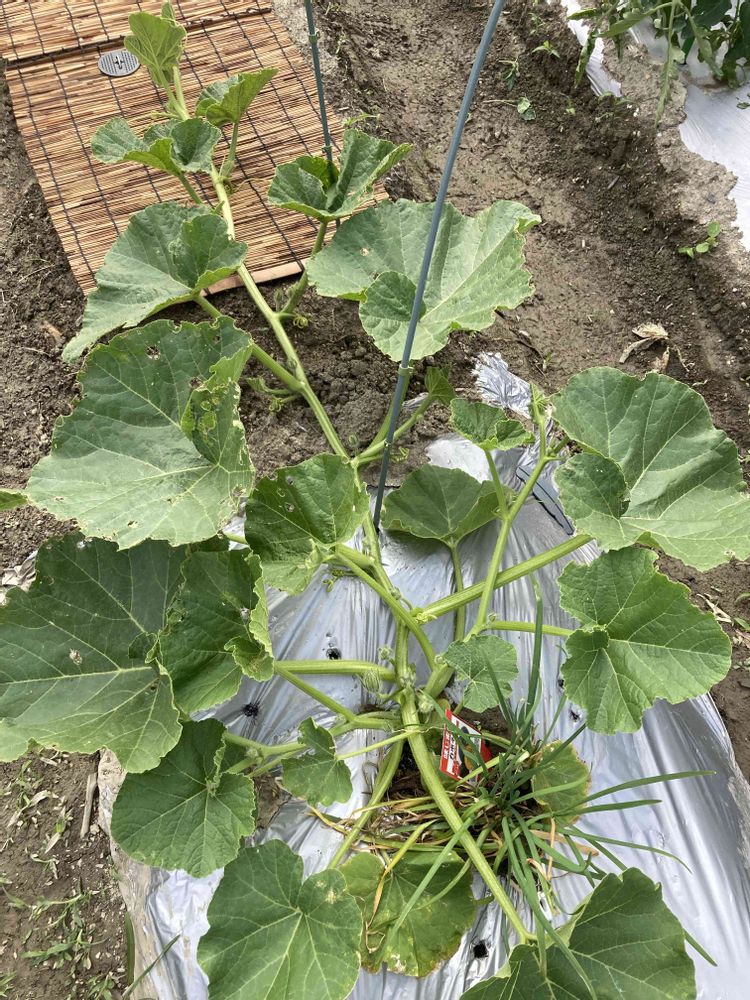かぼちゃが本格的に伸びてきたので、主枝+側枝2本仕立てにします。