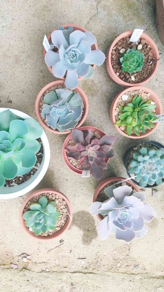 去年10月に手に入れた多肉たち、脱落者なく元気なので似た構図で集合写真撮ってみた。