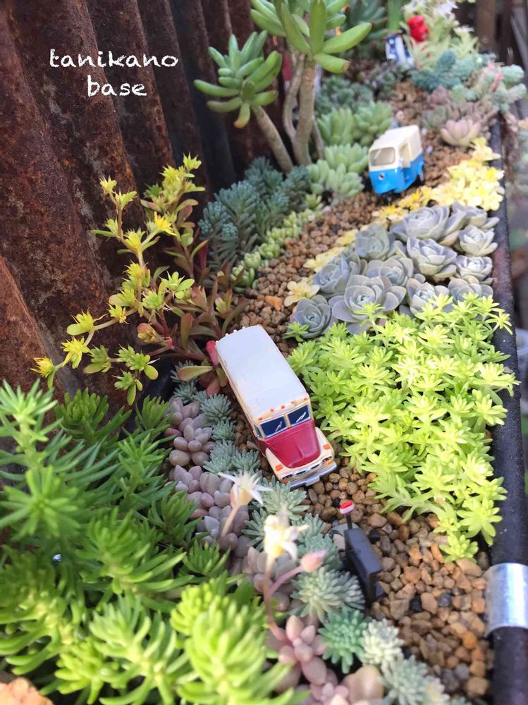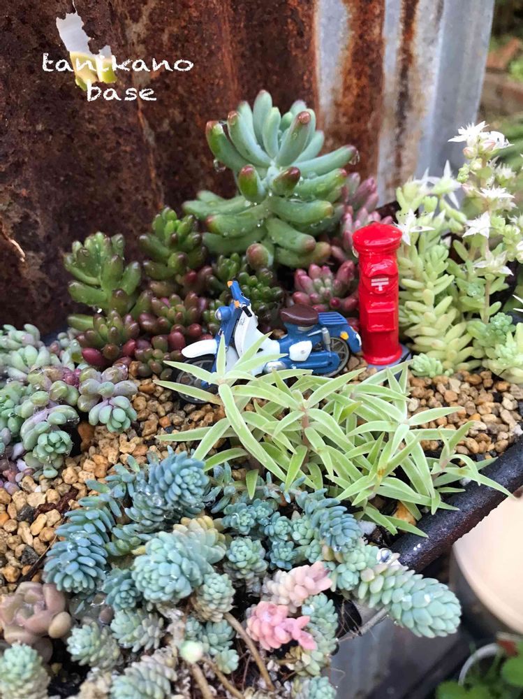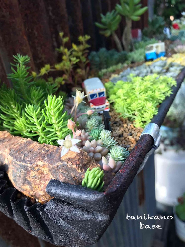 雨樋プランターに箱庭作っちゃうなんて、細すぎ~😄✨✨✨