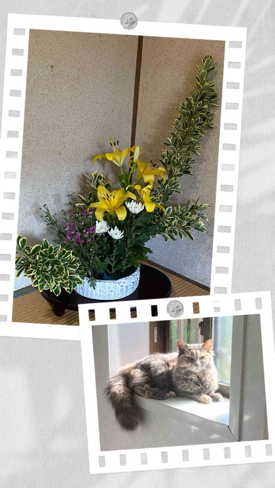 綺麗な生け花と今日も美しいみどりさん🐱の素敵なコラボ📷✨