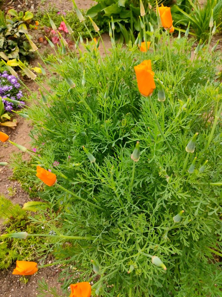 ニゲラさん、ハナビシソウの大株が、風🍃で寝転びました。復活して欲しいで〜す。🤭