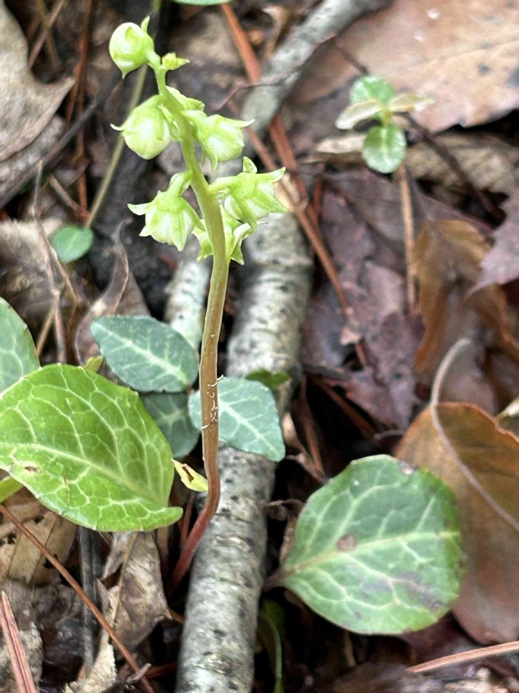 イチヤクソウがぽつんと咲いています。2〜3年前は、今より多く咲いていたのですが、少なくなってしまいました。小さなお花なので、