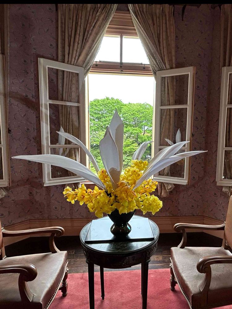 華道家、假屋崎省吾さんとのコラボで、お庭での生花&トークショーと、お邸の中は、要所要所に生花が配置され、とても華やか✨✨