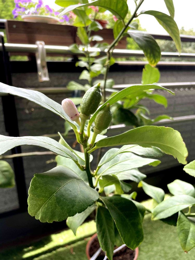 2つ順調に育って3つ目の花もついているけれども、残念だがこの場所にいられるレモンは一つだけなのだ…🍋✂️