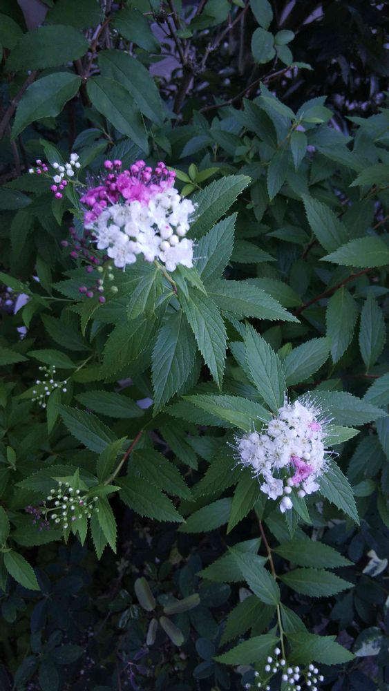 最初に葉を見たときに我が家のシモツケに似てる…えっ⁉️2色のお花なんですね。素敵ですね