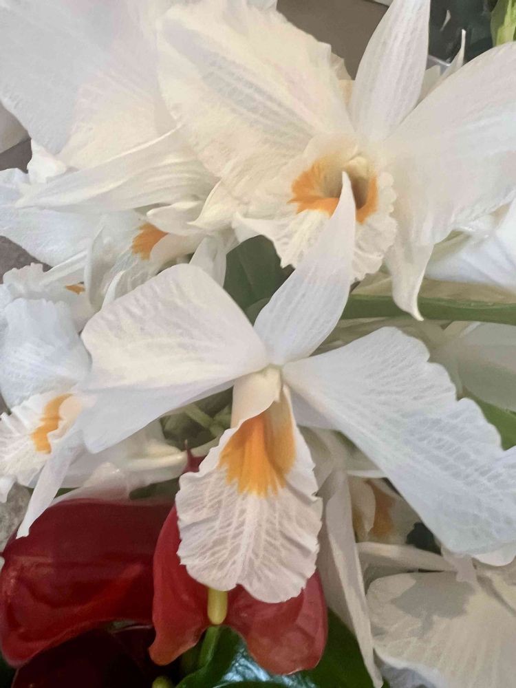 真っ白のフォーミディブル,赤いアンスリウムと合わせて、とても映えますね❤️🤍