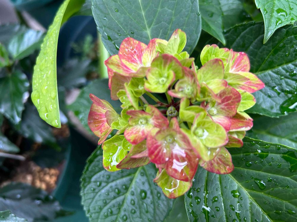 三色咲アジサイという事で華やかな色が楽しいです😊