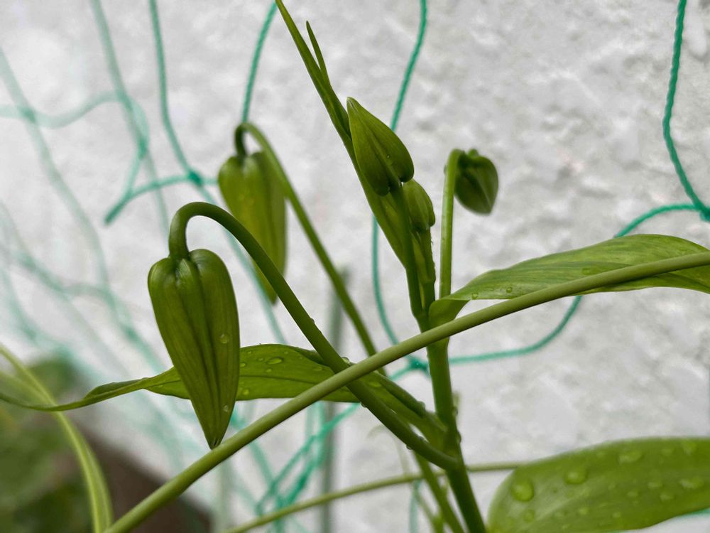 ④一昨年の引っ越しで球根を掘り出してまた植え直したグロリオサが今年はツボミが多くて楽しみです😊