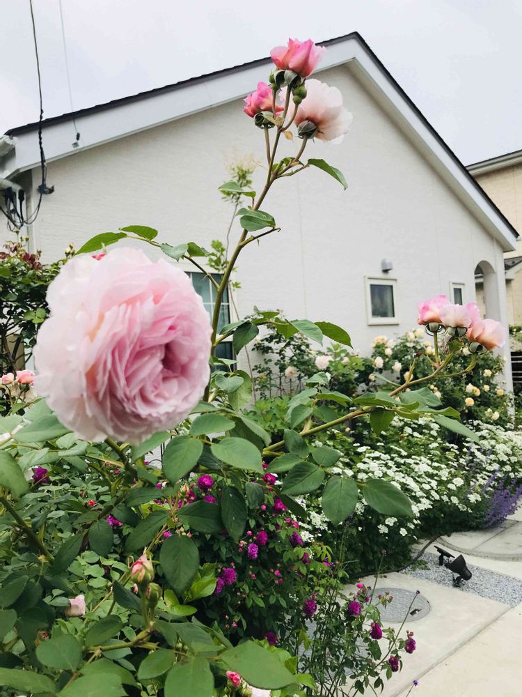 はじめまして。令和2年に庭中心の我が家に建替え、つるバラ、イングリッシュ、オールドローズやラベンダー、宿根草を植えイングリッシュガーデンの庭を作ってます。 我が家の牝猫ボス、ノルさんも ソファーで寝そべって庭を 堪能してます。
