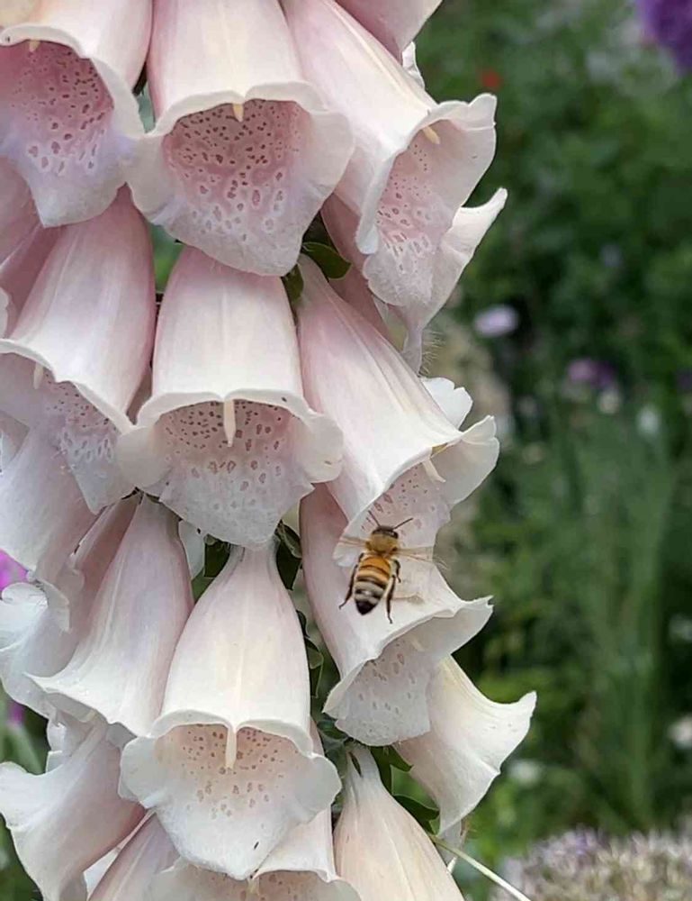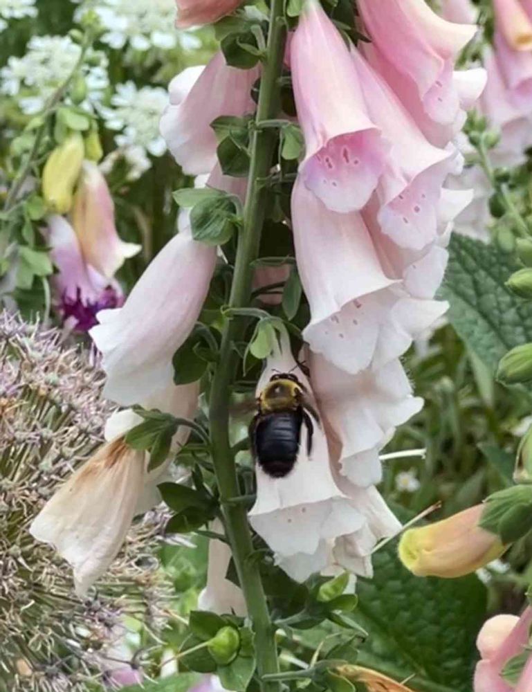 ジキタリキスの花には色々なハナバチが来訪する 🐝西洋ミツバチ 🐝クマバチなど 虫さんが苦手な人ごめんなさい🙏