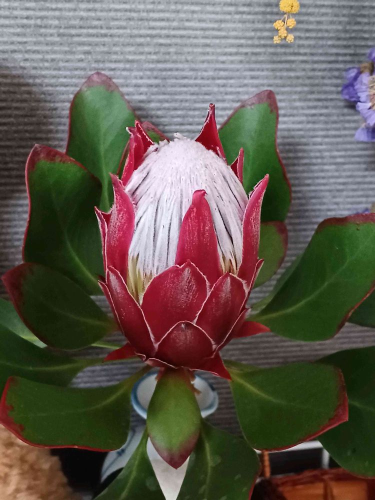 切り花にして開花したプロテアは、お気に入りの一角へ。♪