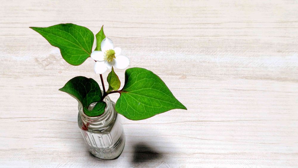 雨降りでもキラキラ可愛いお庭の子たち『ラッキードクダミ』を見つけ特別扱いでお部屋で飾りました🍀