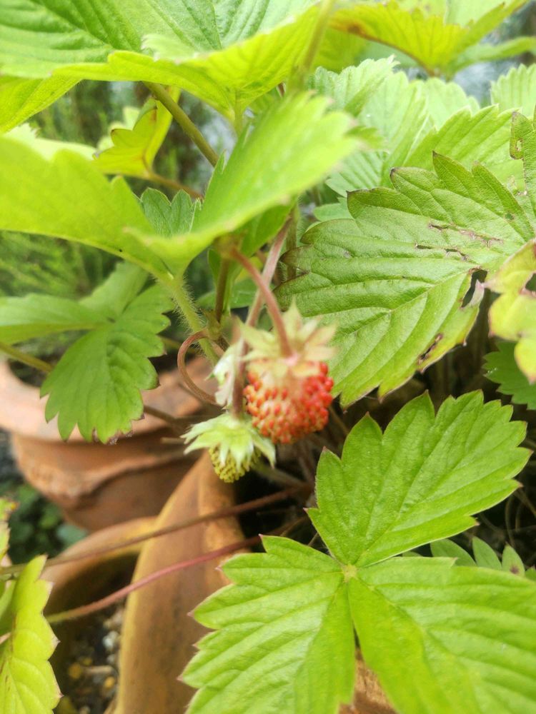 虫がついてわいてたので、放置してたらいつの間にか虫も居なくなり苺も出来てました