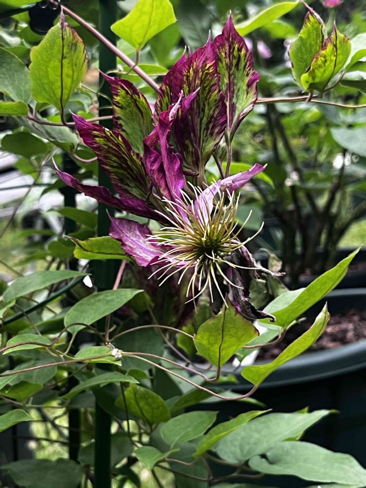 クレマチス花炎の花が散ったら、華やかな鳥の羽のような感じになってキレイです。