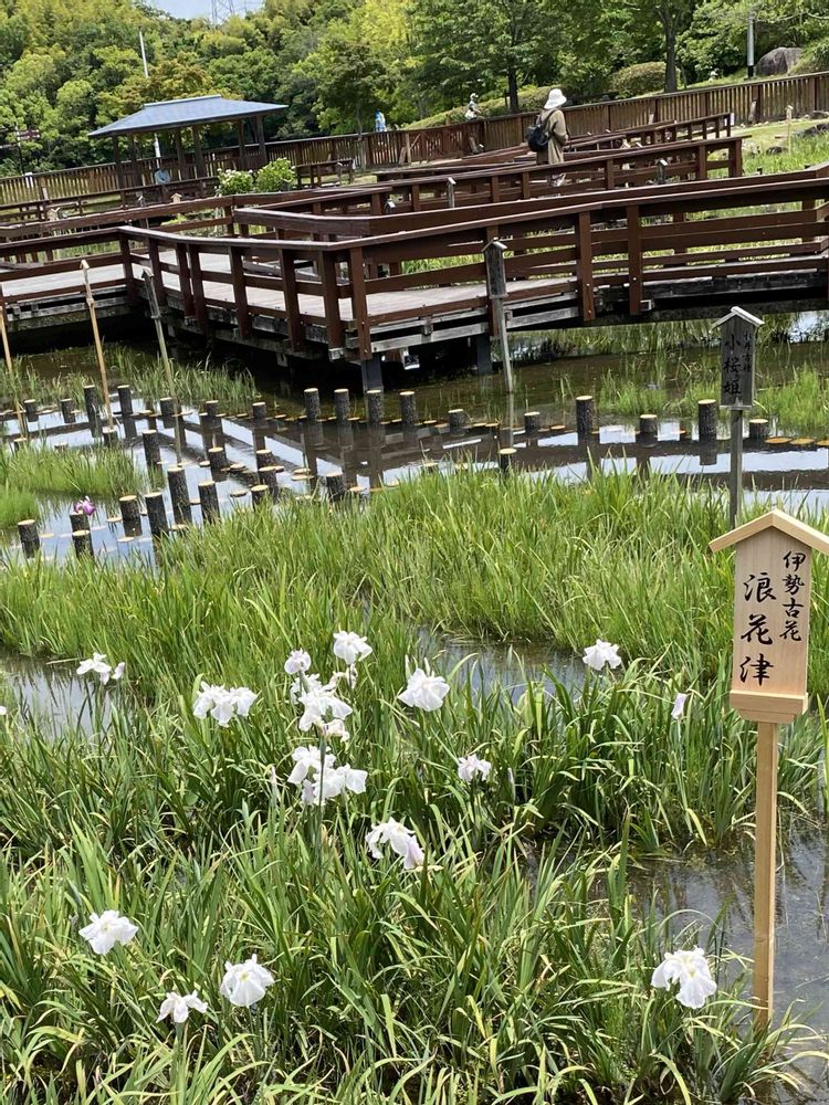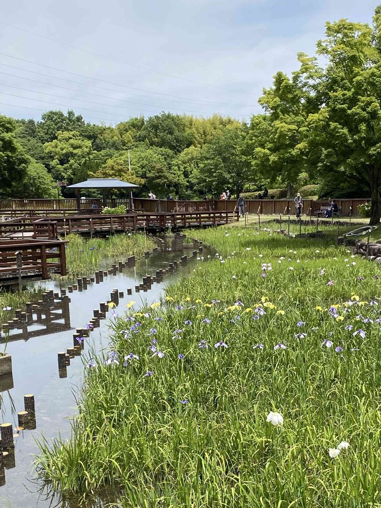 5月30日、大阪府枚方市山田池公園の花菖蒲園で咲いていました。