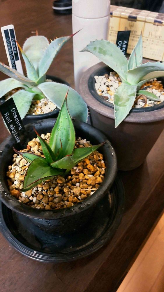 ② アガベ達 根腐れ恐れて小さめの鉢に植え付けたものの、1ヶ月で根詰まり気味に😅