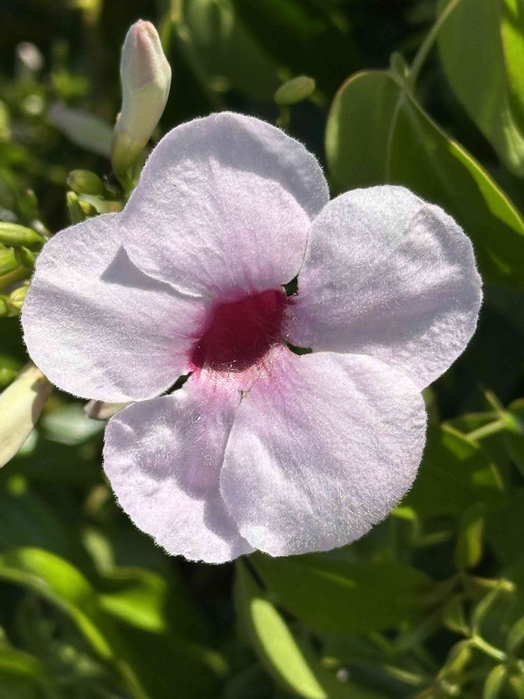 *Tubular flowrrs with spreading lobes,1 1/2 -2 in(4-5cm) across, are white, flushed crimson-pink in the throats.