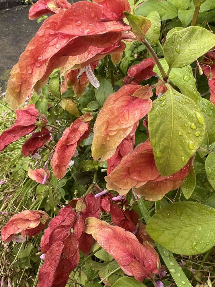 ⑤コエビソウ オレンジ色の幾重にも重なった萼片の中から白い花がちょこんと見えてます🧡🤍