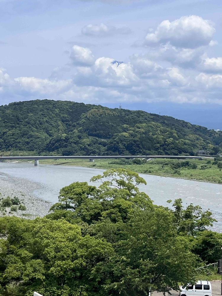 梅雨時を忘れさせてくれる様な、青い空、山々を覆い尽くす森林の緑、製紙の町として有名な富士市の街並み、なかなか見ることが出来ない、光景を、見ることが出来て嬉しいです😆🎵🎵