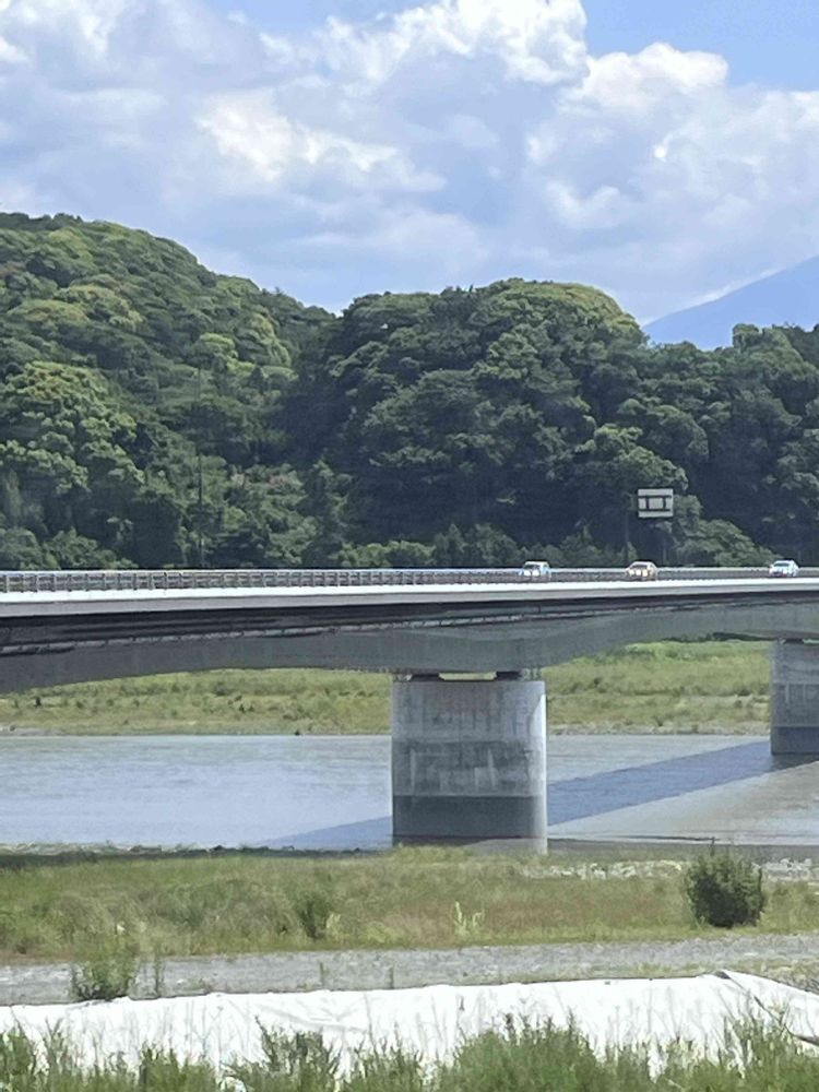 かりがね橋 なんと 長い橋 そして 日本三大急流の ひとつ 河口幅は 日本一の 雄大な 富士川 こんなところをドライブしたら 気持ちいいだろうなぁ🎵 5枚目の奥深い山々