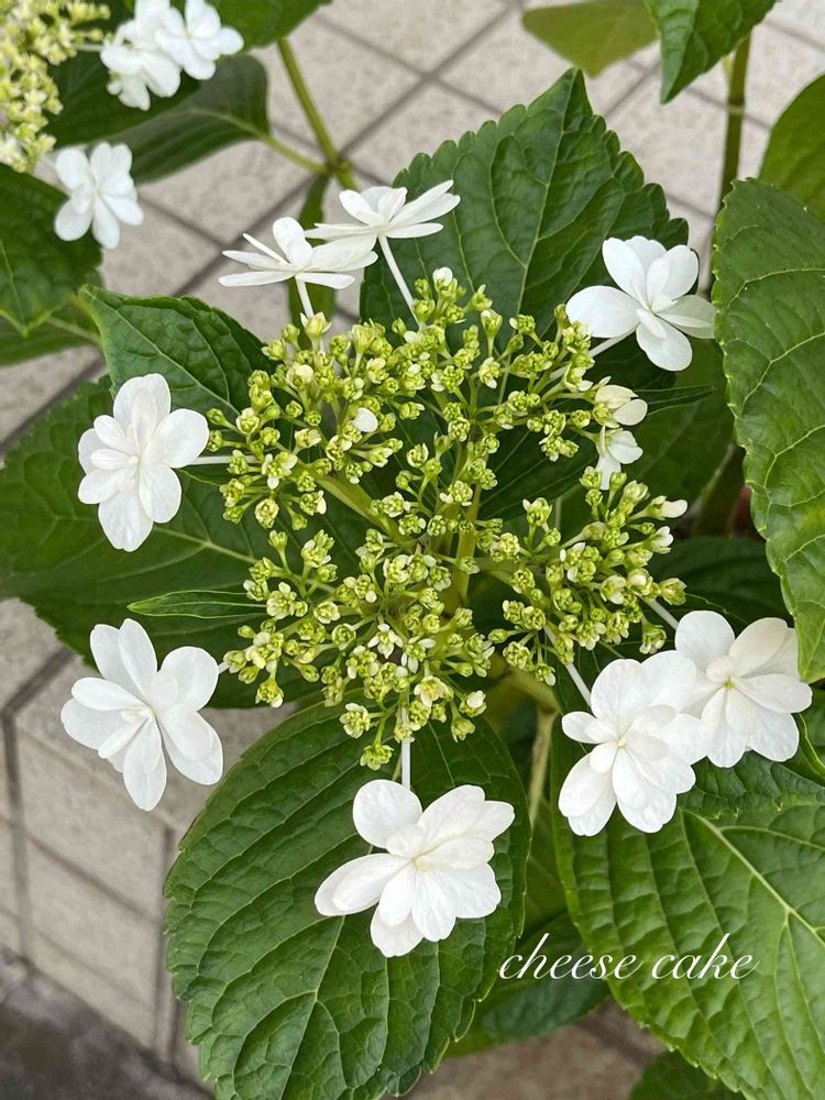 全体が満開のようにはならず小さなお花の周りに大きな白が囲むように見えるのが特徴です