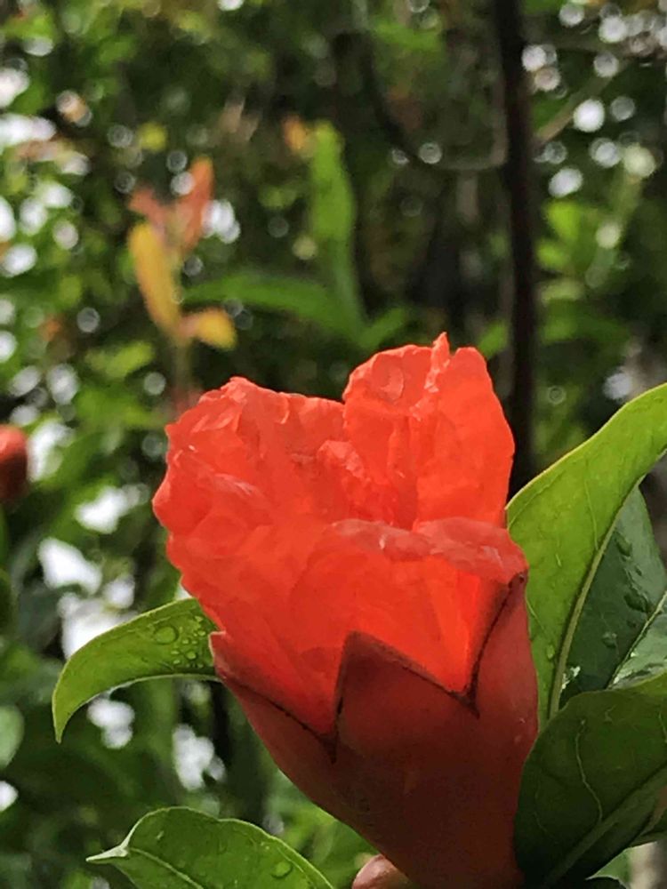 ザクロは、もう少しするとガクが落下し、それを並べると、タコさんウインナーが行進しているように見えるのが可愛くて好きです😃