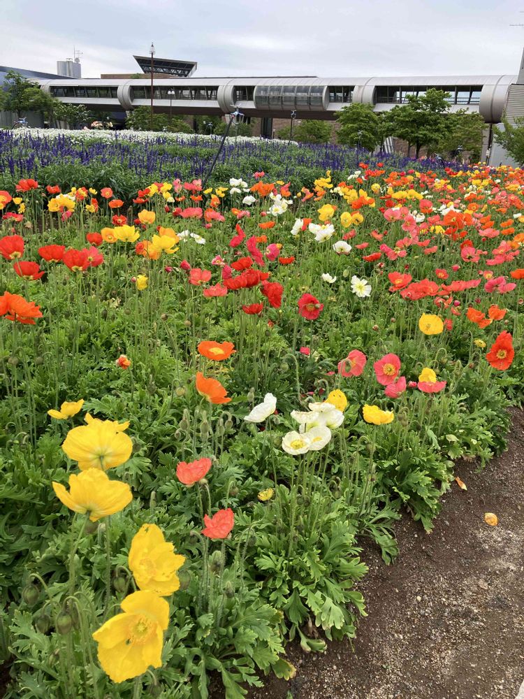綺麗にお花が植えられていてポピー💛🧡が花盛りでひときわ目を引いていました