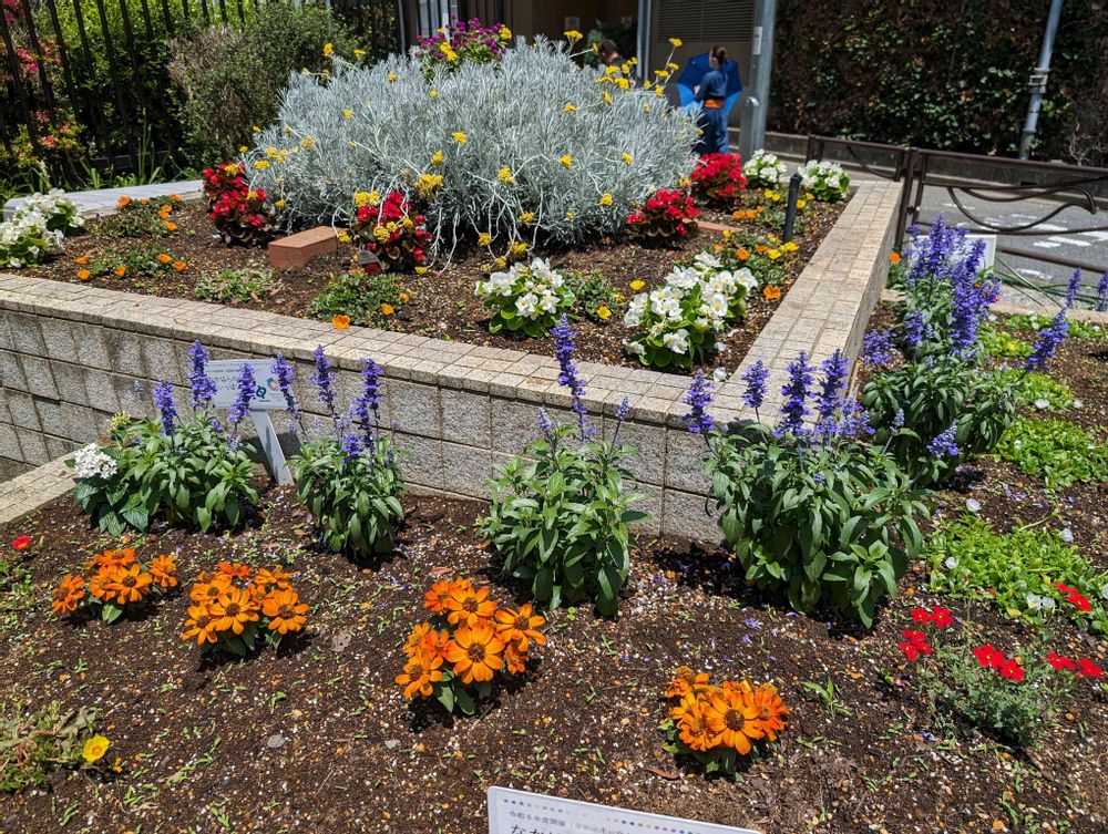 10日前に植えた駅前花壇💗🤍💜🧡