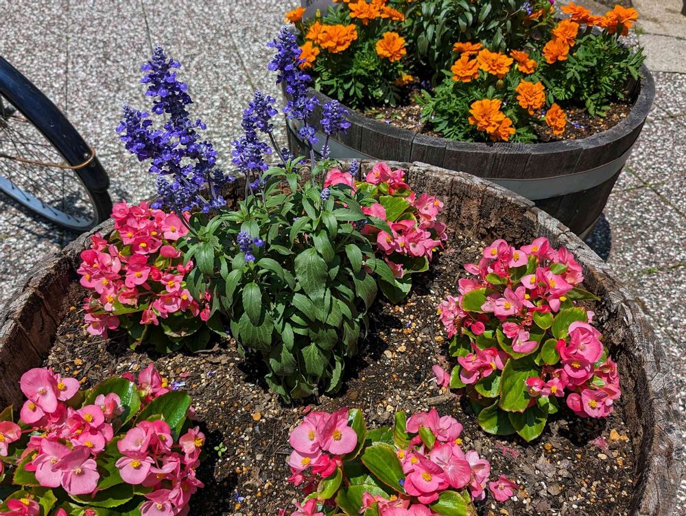 アランの母さんのジニア,ブルーサルビア,ベゴニアの投稿画像