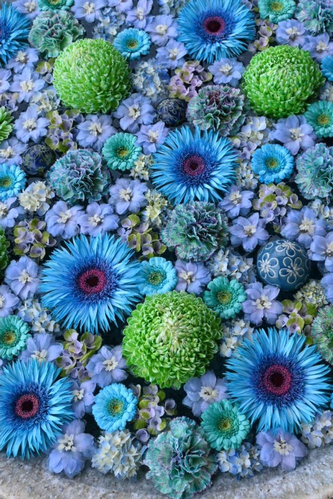 オシャレなお花屋さんが神社で生けてます🩵💙🌿🧎♀