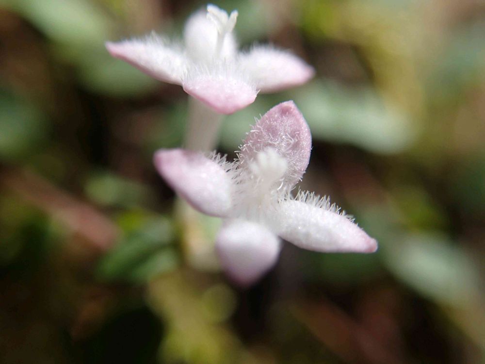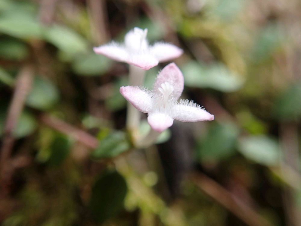 地元の低山でツルアリドオシの小さな花が咲いています。登山道脇や林道で良く見かける山野草です。マクロレンズで撮影するとピンク色に見えます。うぶ毛もありますね。😄🐶✌️