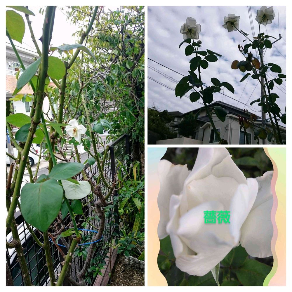 1⃣過去写真 捜せて実家の庭に咲く白薔薇右上↗️と左手 右下のは実生から発芽させ何年も経つ薔薇