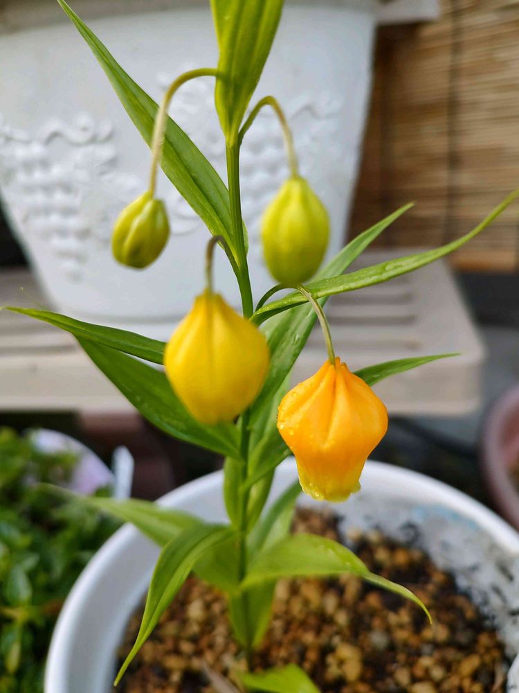 帰りついたら、初めて球根を植えたサンダーソニアが可愛く咲いていました🧡