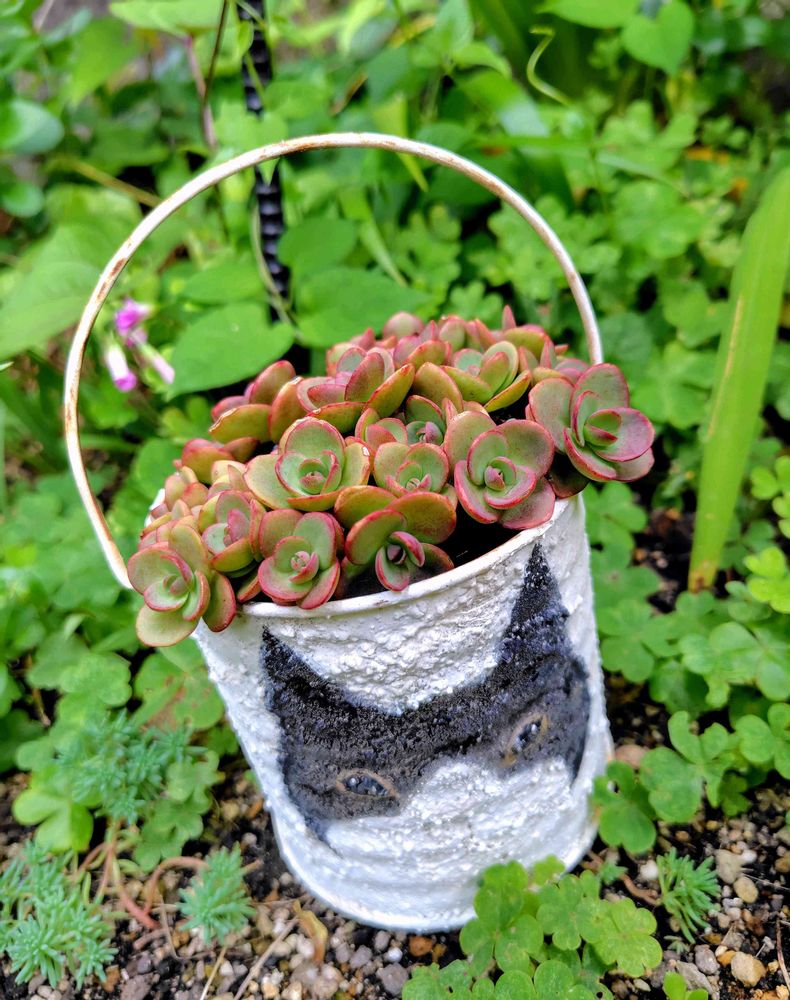 ハチワレニャンコの鉢にライムジンガーもりもり♥️
