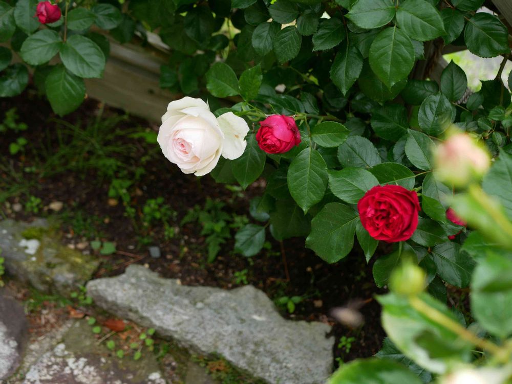 寄り添うように咲いていた可憐なバラ