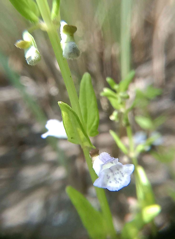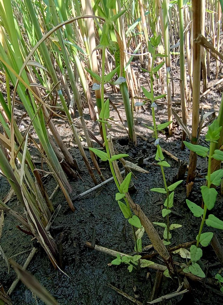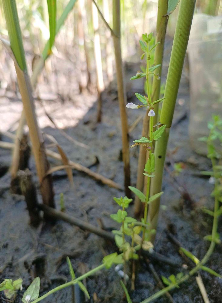 北海道、本州、九州の湿地に生える。高さ10〜40cm。細い地下茎をのばしてふえる。葉は対生し、長さ1〜2cm、幅0.6〜1cmの狭卵状三角形。上部の葉腋にわずかに淡紫色を帯びた小さな唇形花を1個ずつつける。花冠は長さ約7mmで、下唇に紫色の斑点がある。