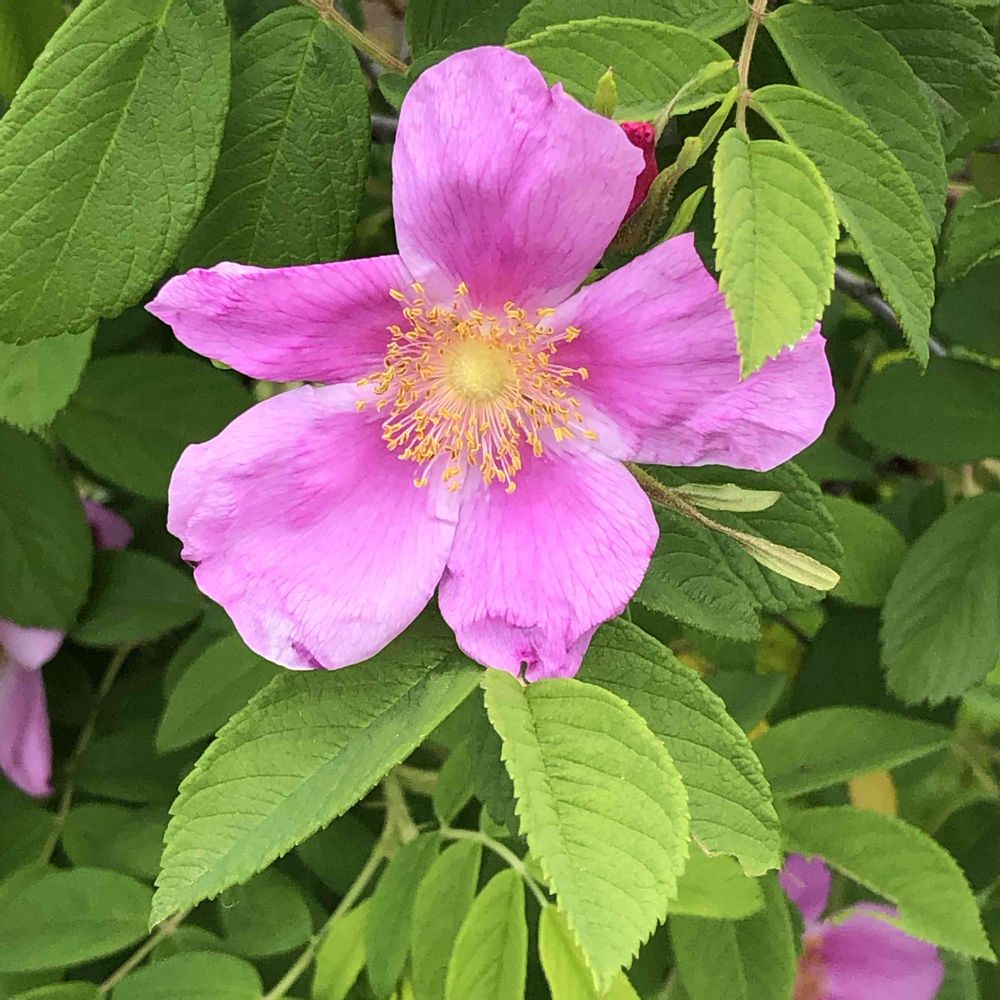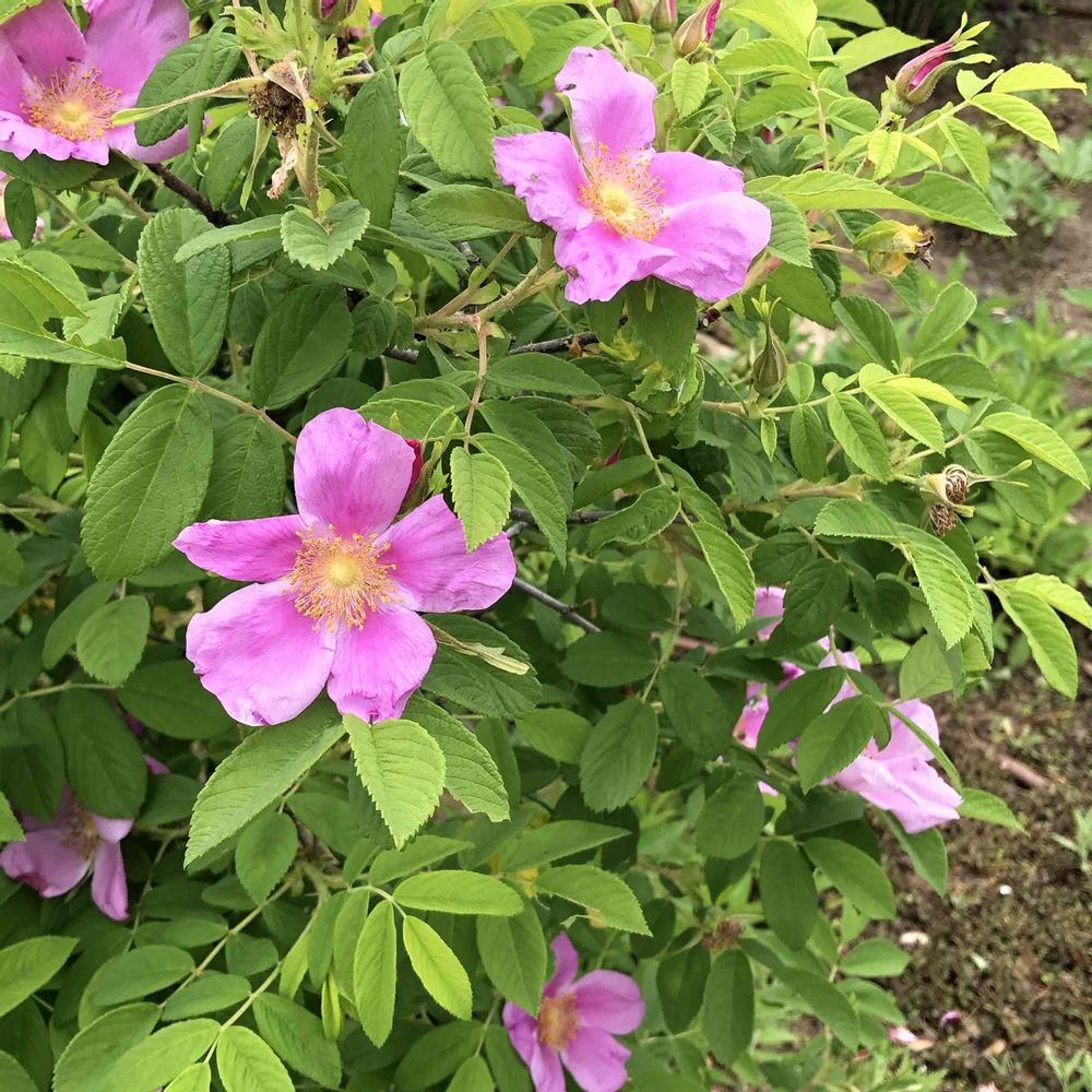 最後の低木もいつもはフワッと茂る葉っぱだけの姿🌿🌿実はバラでした。1週間後には花は終わっていました。