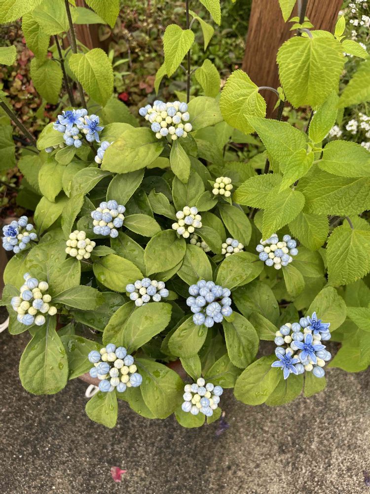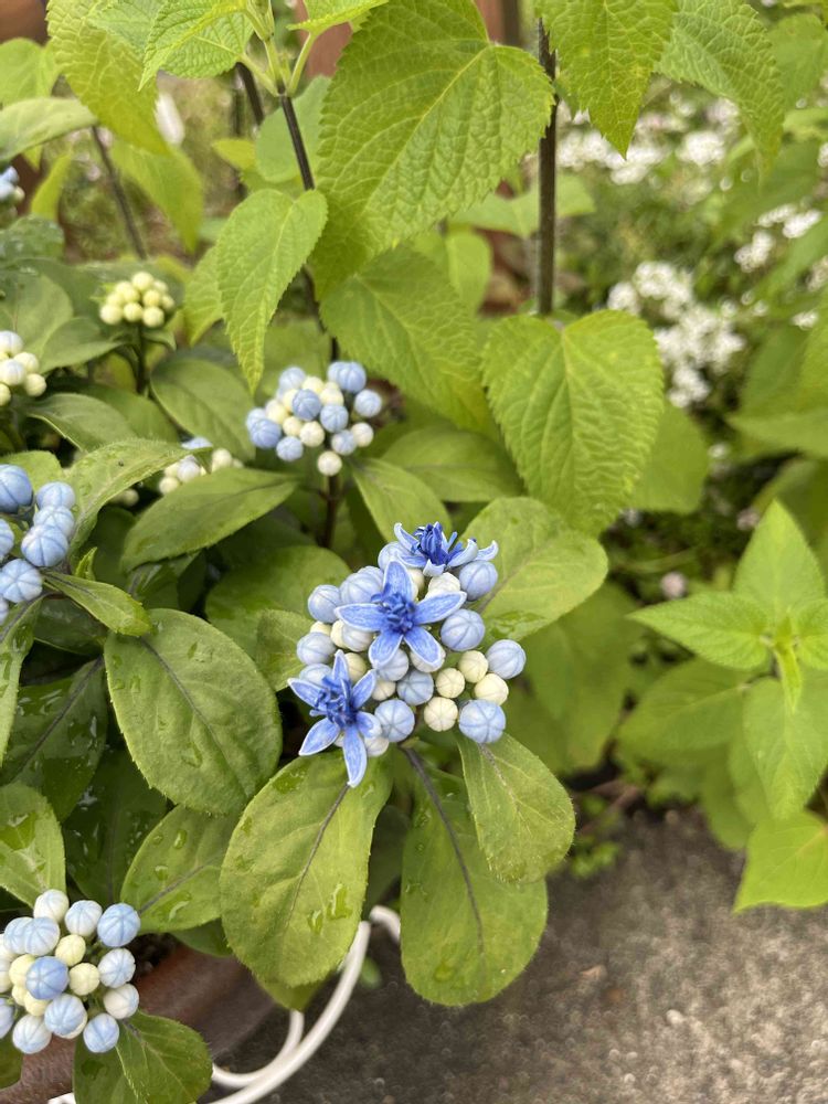 常緑紫陽花の碧の瞳(アオノヒトミ)が咲きました。