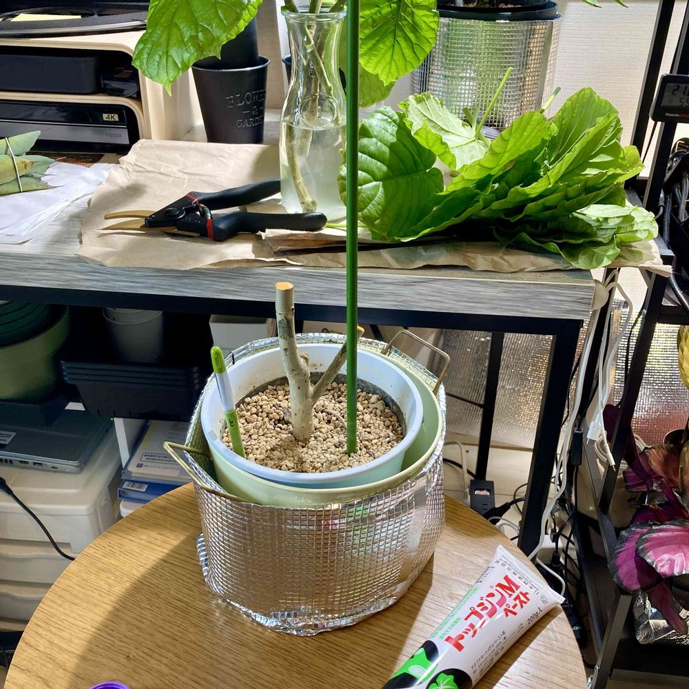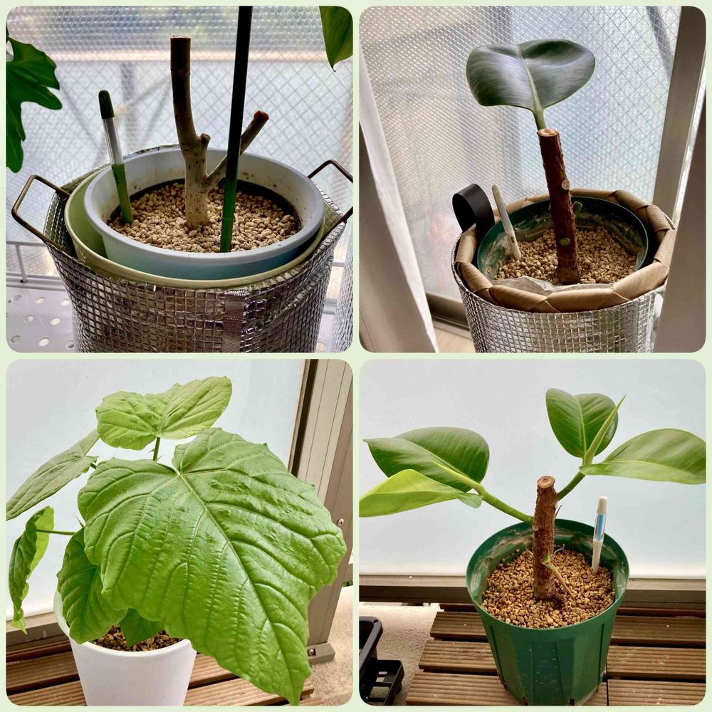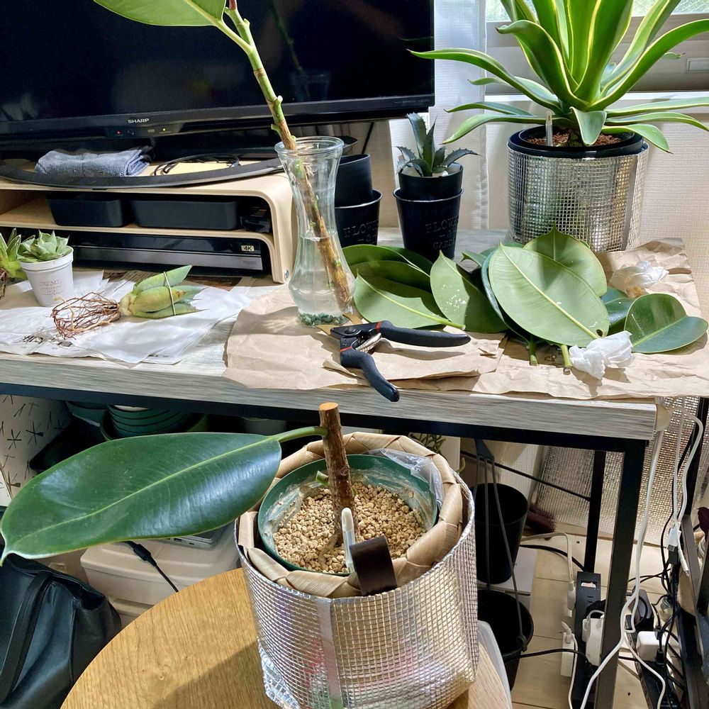 剪定したゴムの木さんたちの親株もかわいい新芽が出てきました😊いい感じになりそうです〜