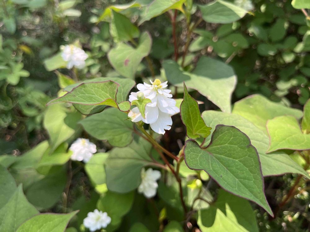 ドクダミに似てる葉っぱと匂い…やっぱりドクダミだった。八重咲きのドクダミって珍しいよね。