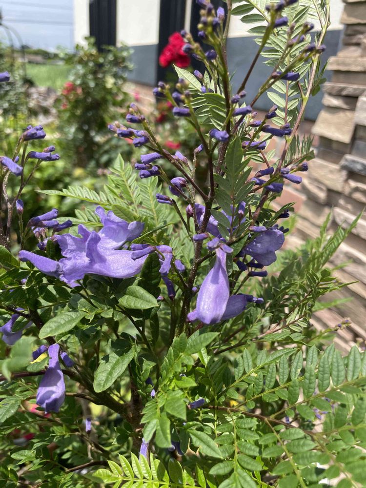 ジャカランダ開花おめでとうございます🎉1m程でお花咲くのですね✨️我が家は手のひらサイズの苗を迎えて3年目程で今80cmくらい。大きくなるの早いですよねー。もう冬にお家の中は厳しいな。無事冬越して来年には咲くかなあ💕︎