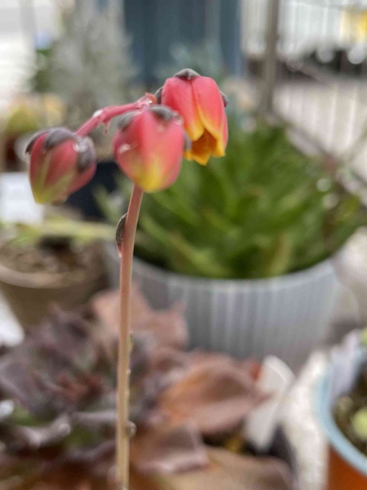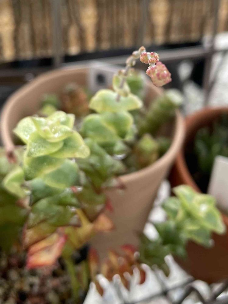 ⑤冬には葉が赤く縁取られるオリビアのお花はくすみカラーだった💛