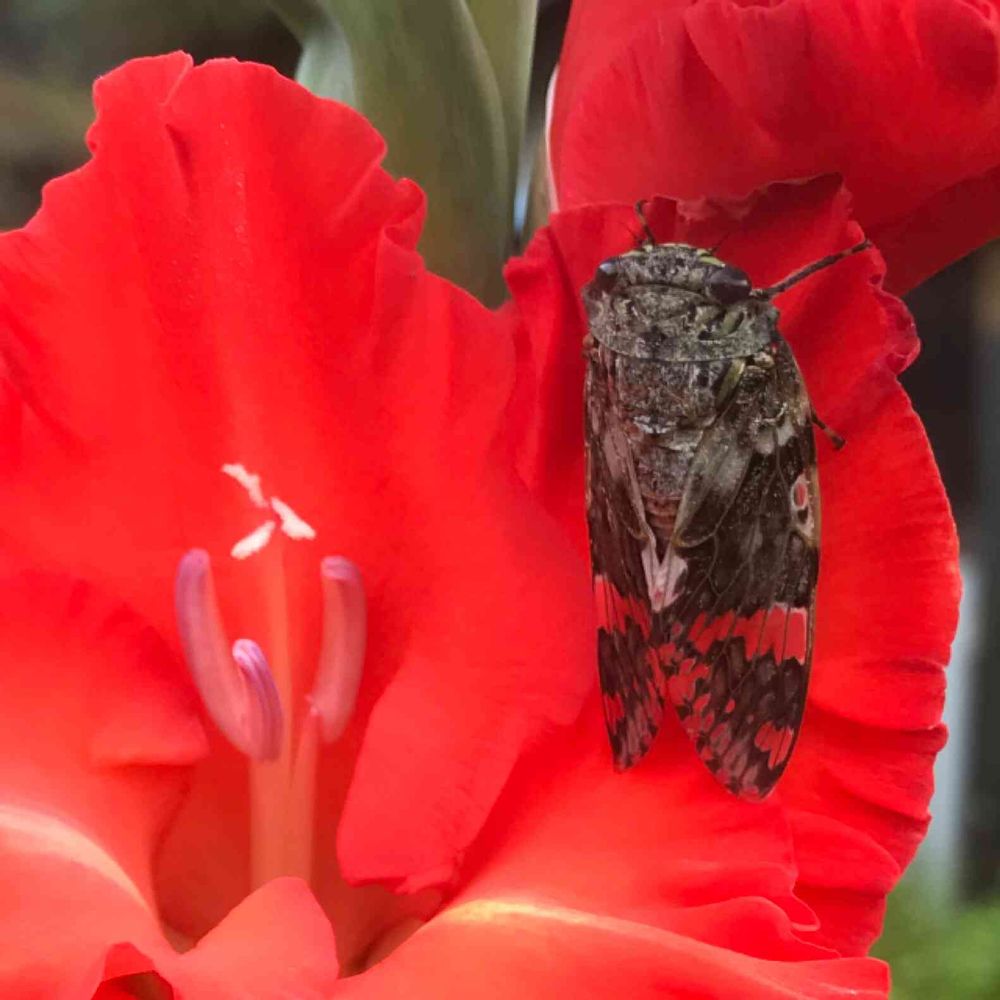 グラジオラスにセミ…ちょっと変わった組み合わせ