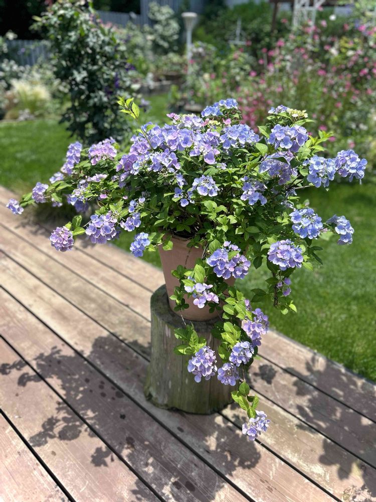 枝垂れる事を願い陶器の素焼き13号鉢に植ってます🌿鉢が重いので今のところ大丈夫でしたが強風時は軒下避難ですね🏠