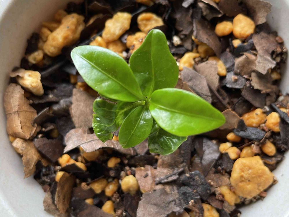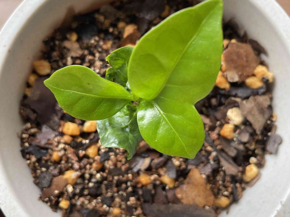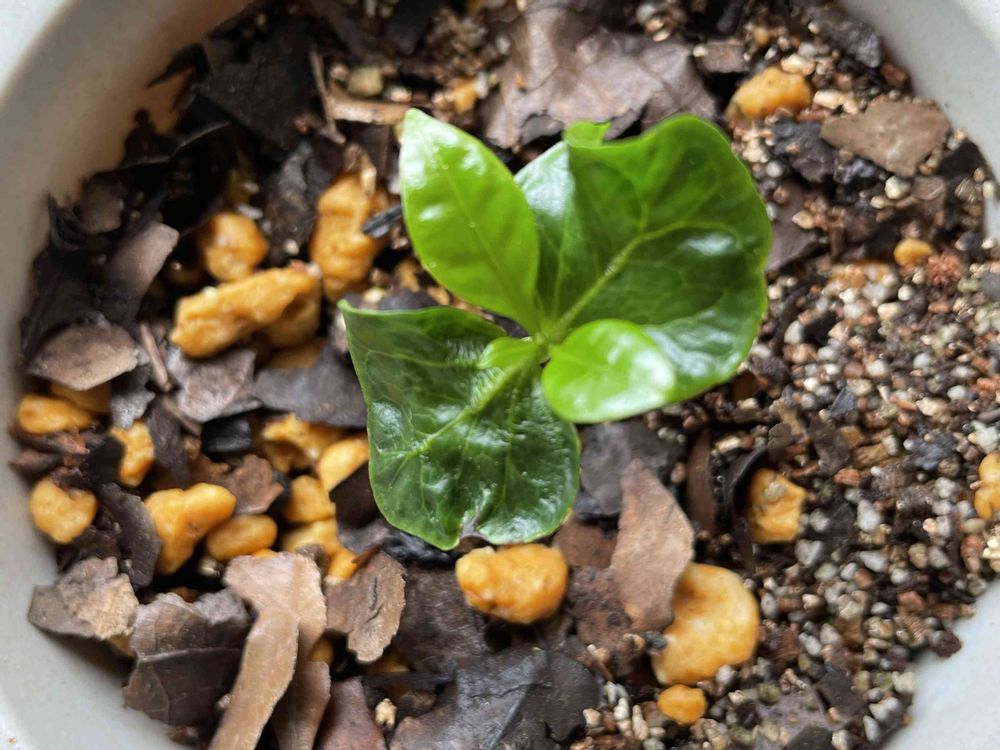 コーヒーチェリーの種(コーヒー豆)からここまで育ってきたのでかわいさも一入です🩷